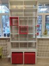 Корпус ЛДСП Эггер 16мм светло-серый U708 st9. Задняя стенка ХДФ 4 мм светло-серый. Внутренние вставки в две ниши стеллажа ЛДСП Эггер 16 мм китайский красный.